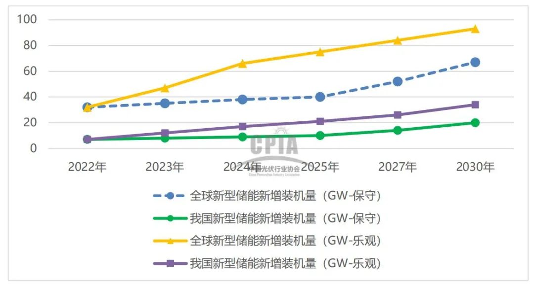 2022-2030年全球及国内新型储能新增装机规模预测